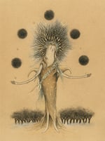 This is an original charcoal, pastel, powdered pigment, varnish and ink illustration entitled, "New Patterns of Contained Flux". It was created in 2025 on 160 gsm Canson Mi-Teintes paper and is framed with a beautiful Italian pewter wooden frame. The picture measures 8.75" x 11.25".