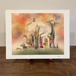 This is a fine art print of an original watercolor, charcoal, pastel and ink illustration. It is printed on 100% cotton rag acid-free velvet paper with archival inks. I have left a white border for framing purposes. This print is signed and beautifully packaged in a clear polyethylene sleeve with title card.